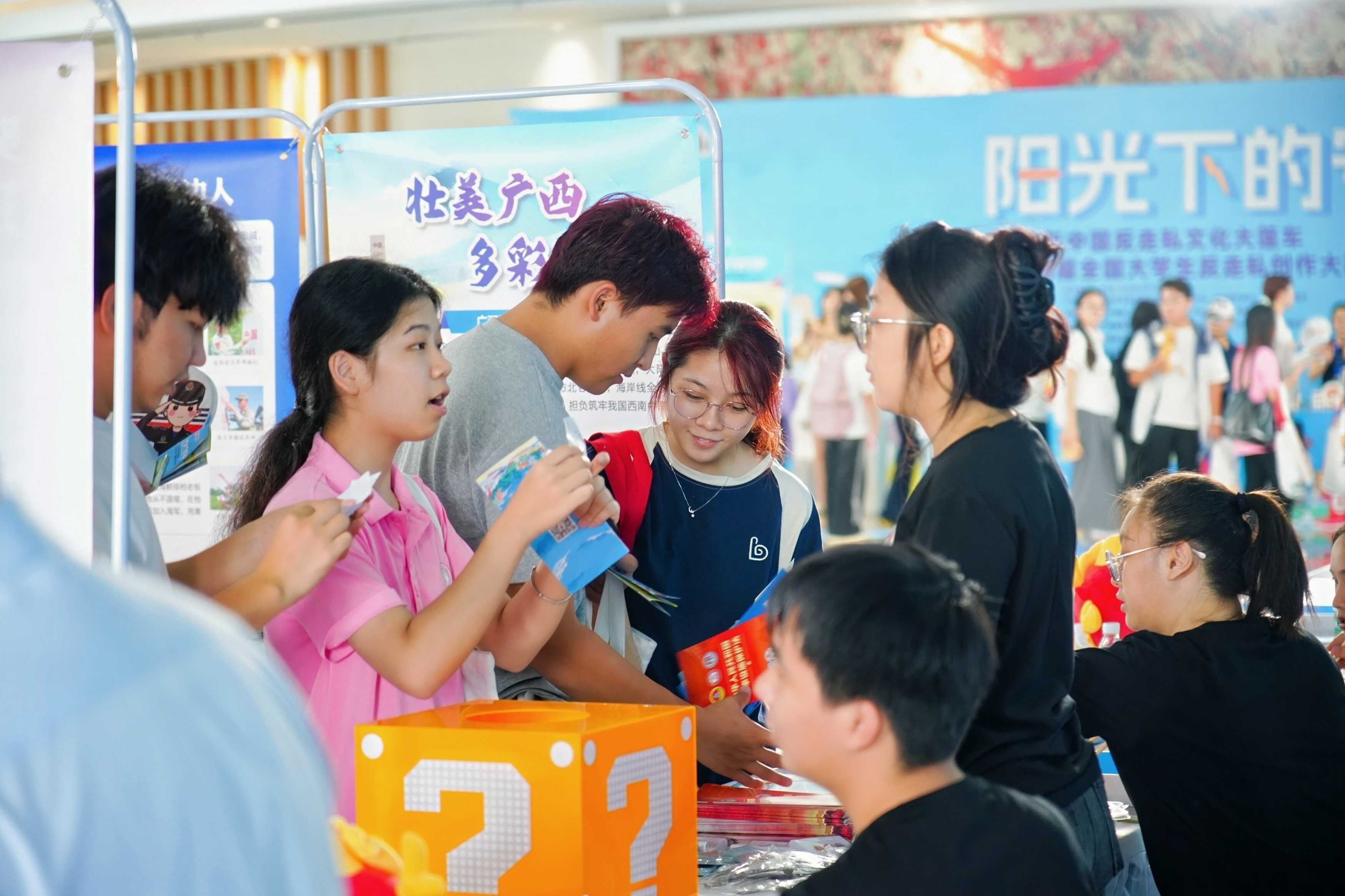 9月19日,“阳光下的守护”2025年中国反走私文化大篷车暨第四届全国大学生反走私创作大赛巡讲活动走进广西大学,自治区国动办作为协办单位,积极参与并设置边海防专题宣传展位,开展了一场别开生面的边海防知识专题宣传活动,成为“人气打卡点”。