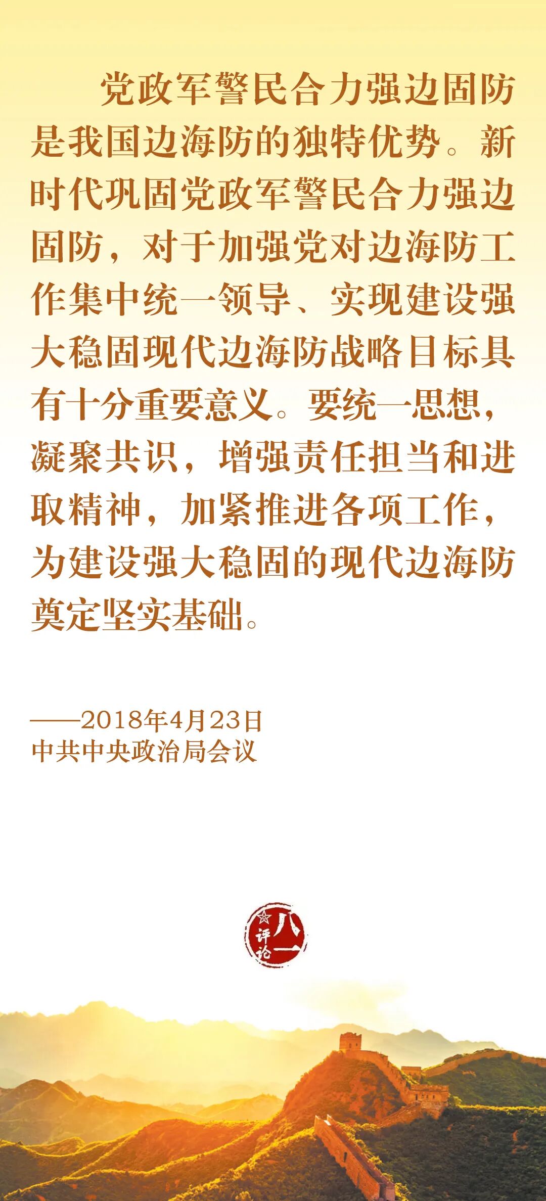 国无防不立,边无防不宁。边防工作是治国安邦的大事。