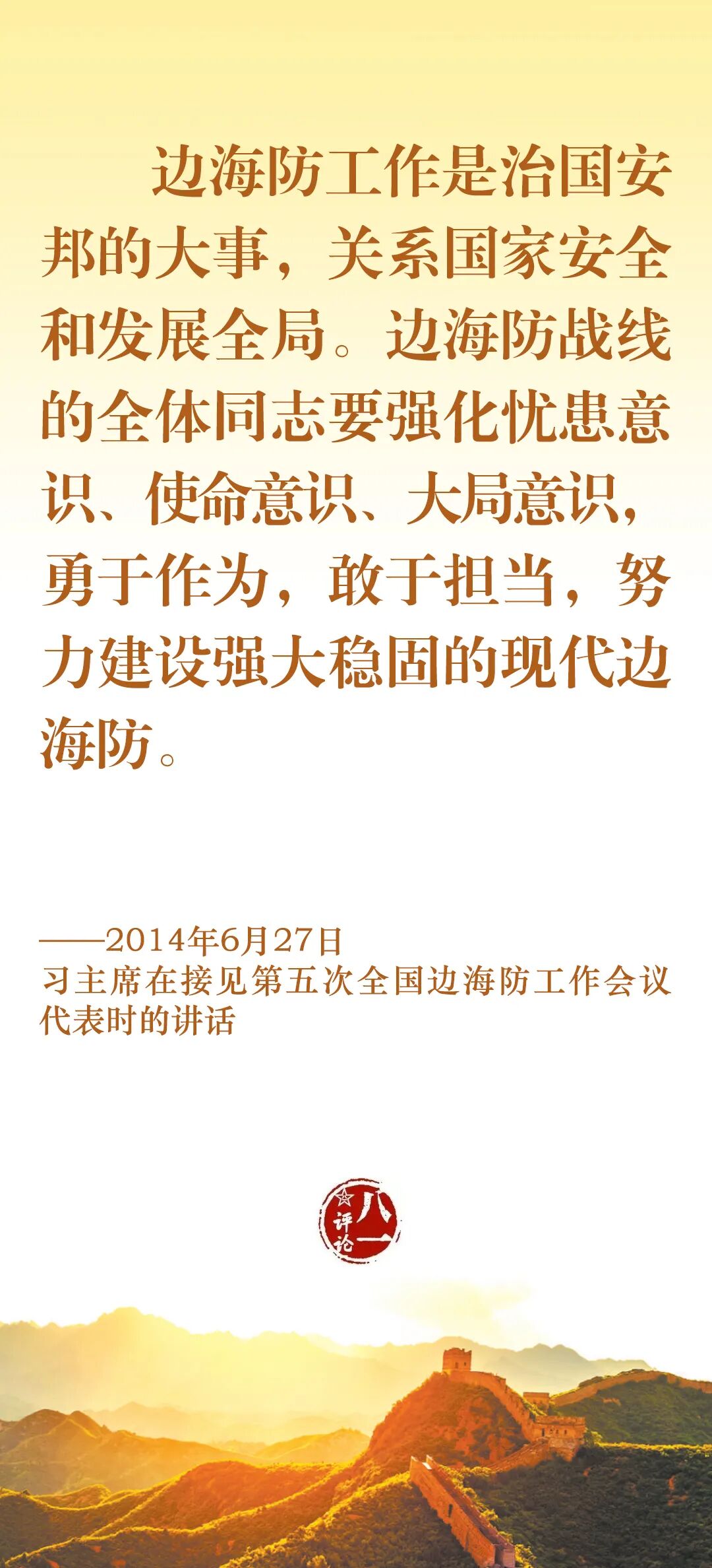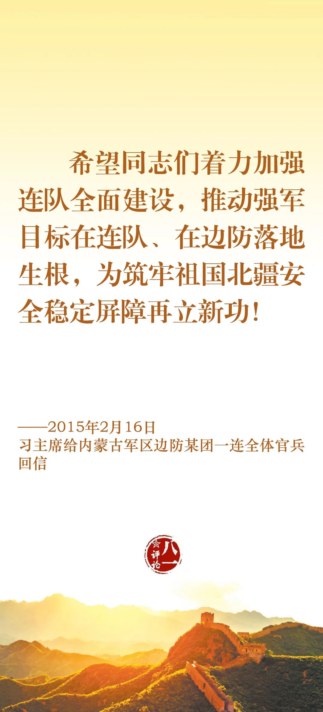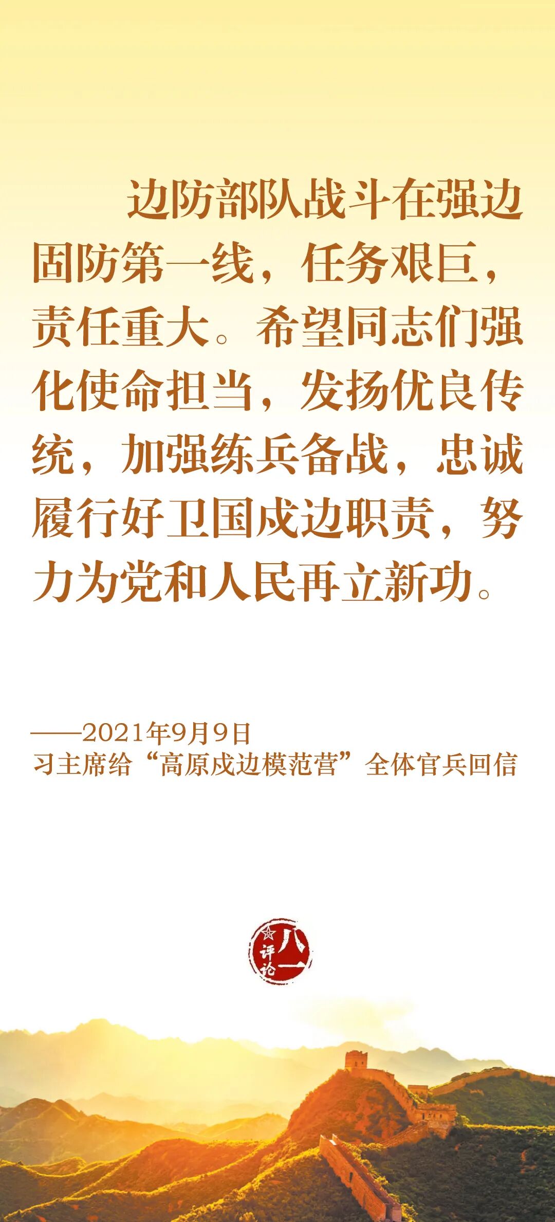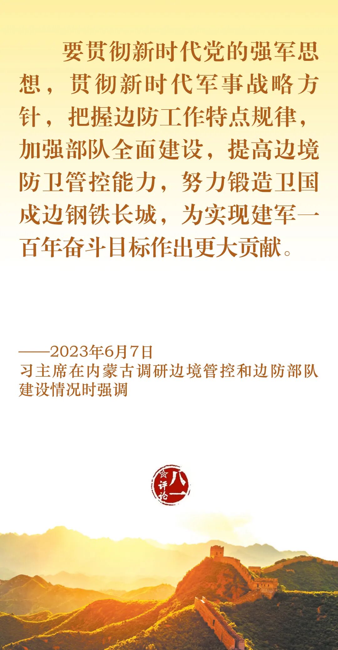 今天,我们一起认真学习习主席关于边防工作的部分重要论述,牢记使命职责,加强练兵备战,为党和人民守好边、固好防。
