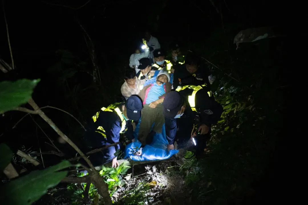 终于,我到了伤者身边。他脸色苍白,身体多处受伤,但意识清醒。我问,“还好吗?”“我的腿受伤了。”他回答。我将他的腿固定好,背起他,紧握树枝当作拐杖,一路扶着树干、拉着藤条等植物, 一点一点地把他转移到相对安全的地带。