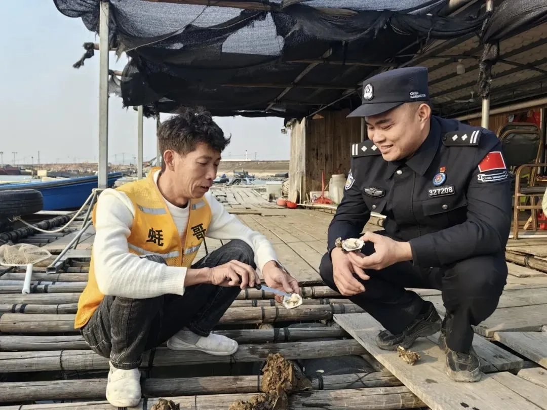 “七哥,现在的生蚝肥吗?价格和销路怎样?”2024年12月30日上午,北风微寒,在起伏不定的海上蚝排,陈张扬娴熟地和渔民打招呼、拉家常,这是他每周必开展的走访工作,辖区渔船走得多了,周边的渔民对他极为熟悉。