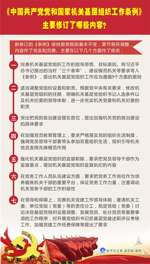 近日,中共中央印发新修订的《中国共产党党和国家机关基层组织工作条例》(以下简称《条例》)。《条例》公开发布之际,中央组织部负责人就《条例》的修订和贯彻落实等问题,回答了记者的提问。