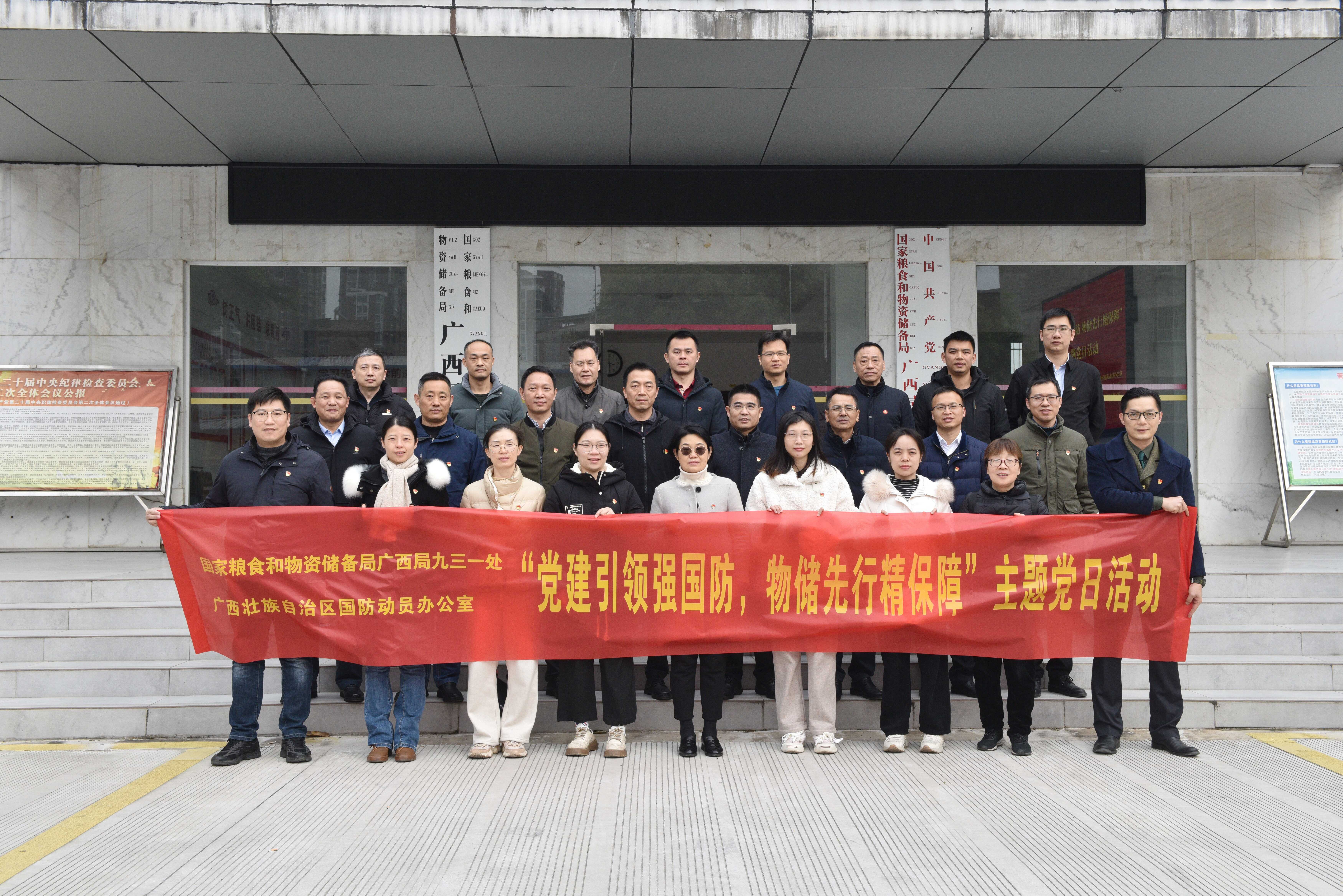 1月24日,自治区国动办财务处、协调处、督导处、指通处和防护处等五个处党支部与国家粮食和物资储备局广西局九三一处(以下简称九三一处)四个党支部联合开展“党建引领强国防 物储先行精保障”主题党日活动。自治区国动办党组成员、副主任廖新与国家粮食和物资储备局广西局党组成员、副局长朱华仁以普通党员身份参加主题党日活动。