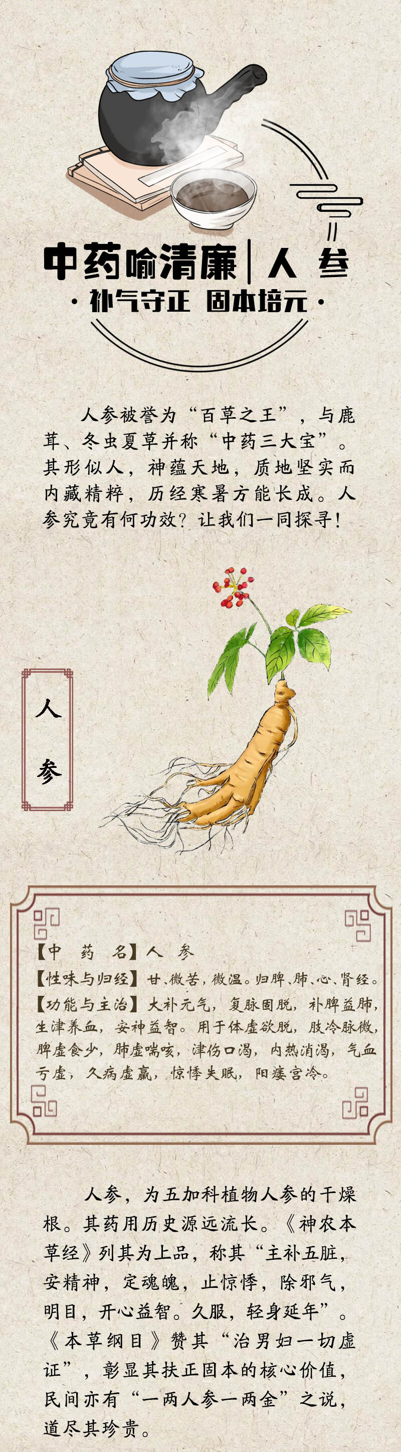 中药喻清廉丨人参:补气守正 固本培元