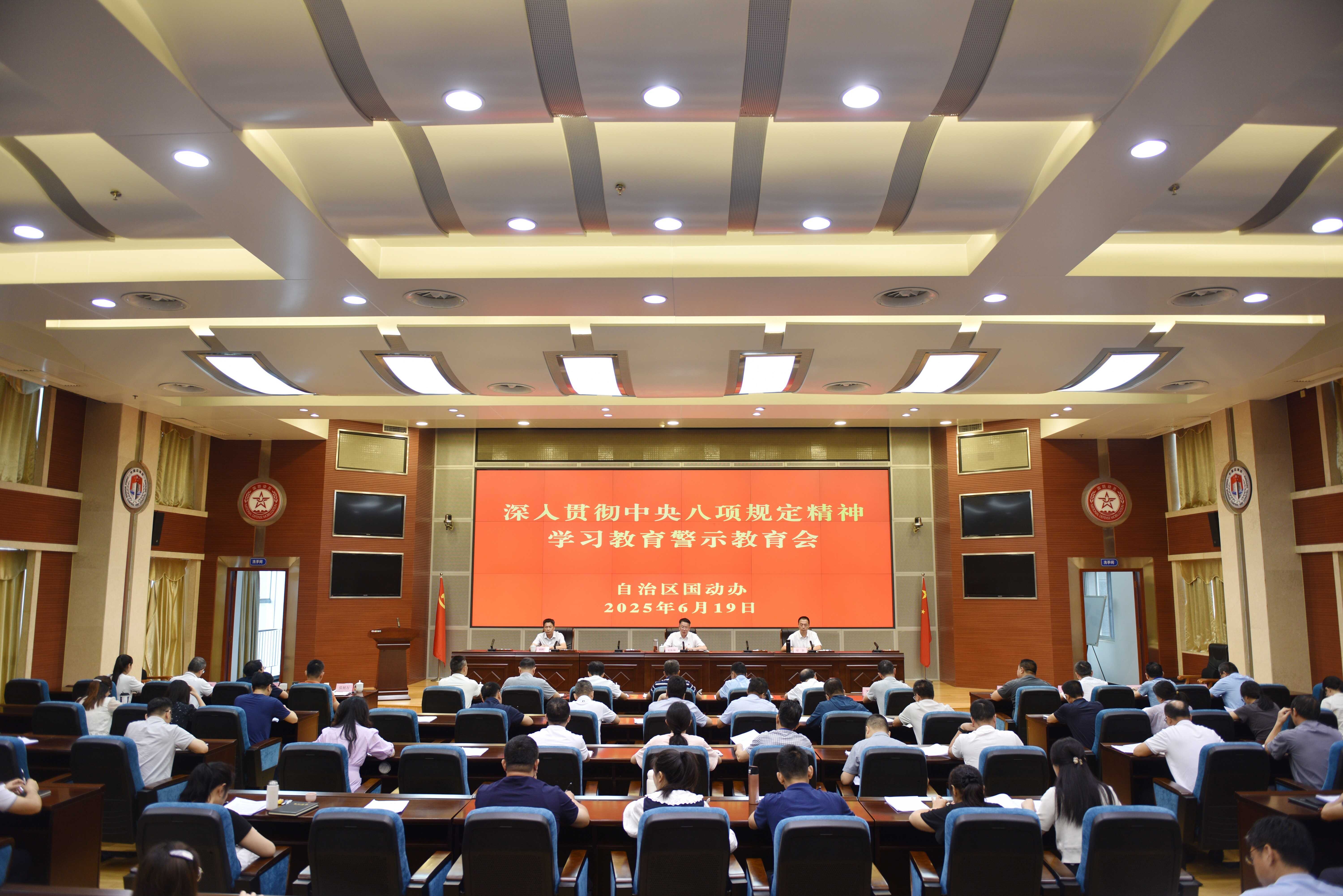 6月19日,自治区国动办召开深入贯彻中央八项规定精神学习教育警示教育会。自治区国动办党组成员、副主任夏振林受党组书记、主任韦绍仕委托,作警示教育讲话。党组成员、副主任廖新主持会议。