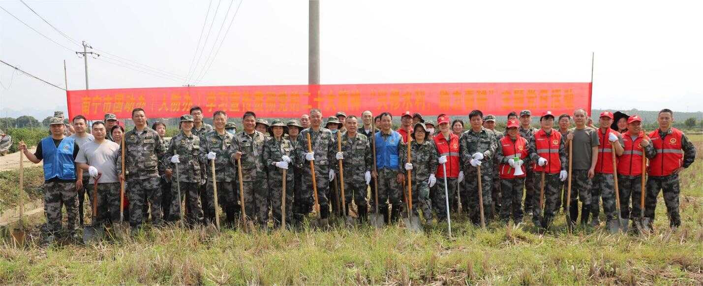 为深入贯彻落实党中央、自治区党委和市委关于认真学习宣传贯彻党的二十大精神的部署要求,持续在全面学习、全面把握、全面落实上下功夫,3月10日,南宁市国动办(人防办)机关党委联合武鸣区太平镇庆乐村党总支部开展“兴修水利 助力春耕”主题党日和清廉机关建设活动。办领导、所属各党支部党员干部及庆乐村“两委”成员、驻村工作队员等60余人参加活动。