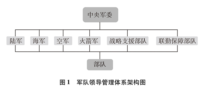 中华人民共和国中央军事委员会领导全国武装力量,中央军事委员会实行主席负责制。按照“军委管总、战区主战、军种主建”原则,军委机关15个职能部门,作为军委集中领导的参谋机关、执行机关、服务机关。军种包括陆军、海军、空军、火箭军、联勤保障部队、战略支援部队,战区包括东部、南部、西部、北部、中部5个战区,构建起“中央军委-军种-部队”的领导管理体系和“中央军委-战区-部队”的作战指挥体系。