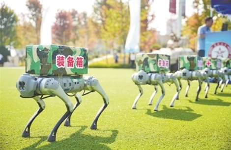 在陕西省国动办牵头组织的国防动员宣传教育活动中,相关单位展示运用无人智能化设备运送物资。陈 相摄
