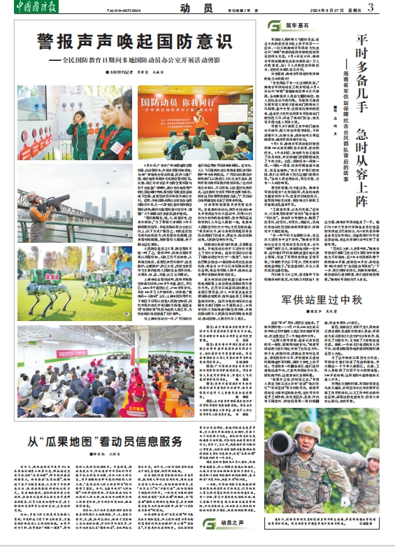 国防建设既要与时俱进,又要覆盖全员。多地国动办在扩大宣传教育面上下功夫求突破。山东省国动办打造了国防动员宣传教育“一张图”,与省文旅厅联合推出49条国防动员红色旅游线路,将全省16个设区市国防动员宣教品牌、精品课程纳入图中,提高社会各界对国防动员的关注度。