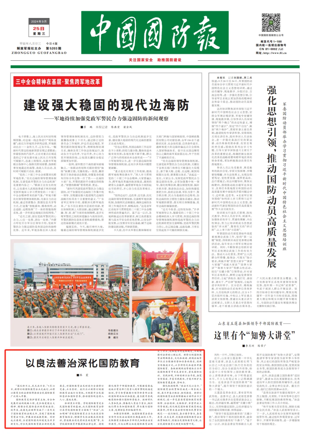 “国无防不立,民无兵不安。”9月21日,新修订的国防教育法正式施行,必将以强有力的法律保障推动全民国防教育广泛深入开展。