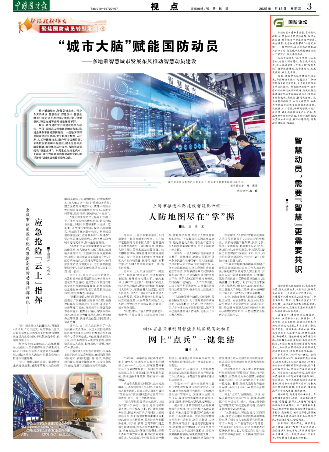 共筑国防,有你有我。推动智慧动员建设,需要“智慧”更需要共识。期待更多人积极参与、共同推动国防动员建设,进一步凝聚共识、汇聚合力,为智慧动员建设添砖加瓦。(■王世伟)