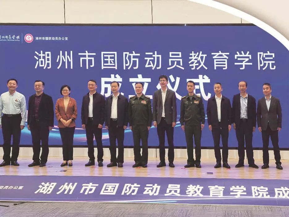 浙江省湖州市国防动员教育学院在湖州师范学院挂牌成立。姜海东摄