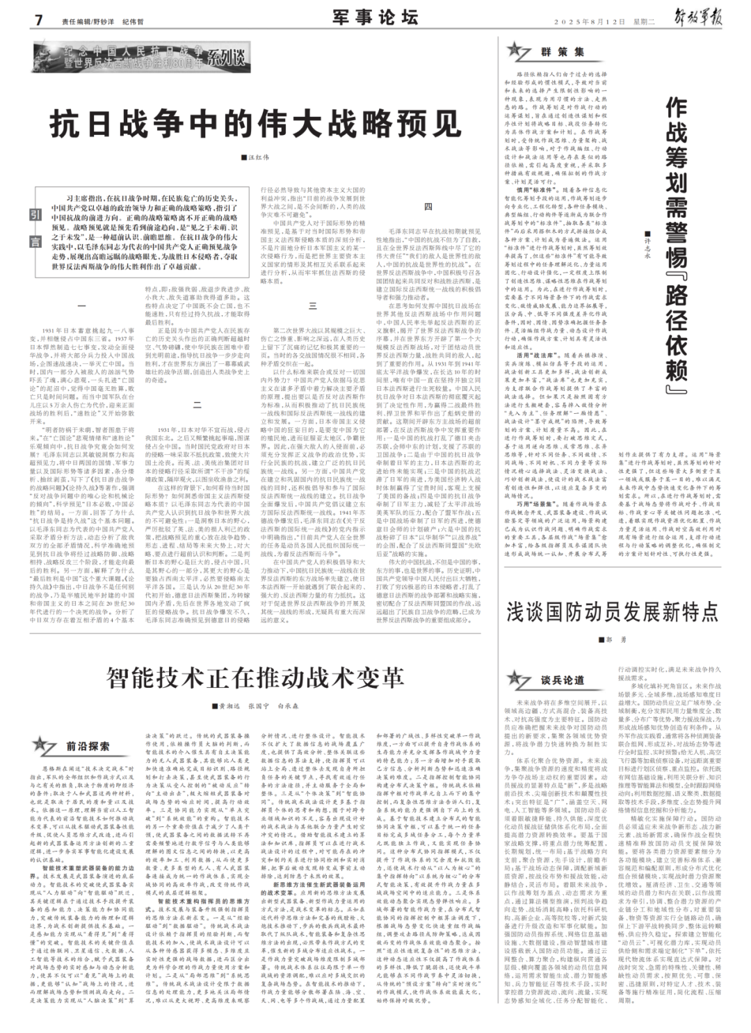 体系化聚合优势资源。未来战争,集聚战争资源的速度和精度将成为争夺战场主动权的重要因素。动员援战的显著特点是“新”,多是战略前沿技术、尖端创新技术和颠覆性技术;突出特征是“广”,涵盖空天、网电、人工智能等多领域。国防动员必须着眼敏捷释能、持久供能,深度优化动员援战征储供体系化布局,全面提高潜力资源转换效率。要基于国家战略支撑,将重点潜力统筹配置,长期规划,统一布局;基于战略方向支前,聚合资源,先手设计,前瞻布局;基于战场动态保障,调配新域新质资源,按战役布势和援战效能,动静结合,灵活布局。着眼未来战争,以作战筹划为基点、动态需求为重点,通过算法模型推演,预判战争趋向走势、战场消耗高峰;依托科研机构、高新企业、高等院校等,对新式装备进行升级改造和军事化赋能。加强国防动员指挥系统、网络信息基础设施、大数据建设,推动智慧城市建设搭载嵌入国防动员功能。通过云网整合、算力聚合,构建纵向贯通各层级、横向覆盖各领域的动员信息网络,运用需求智能生成、潜力智能感知、兵力智能征召等技术手段,实时掌控潜力资源流动、流向、流量,实现态势感知全域化、任务分配智能化、行动调控实时化,满足未来战争持久援战需求。