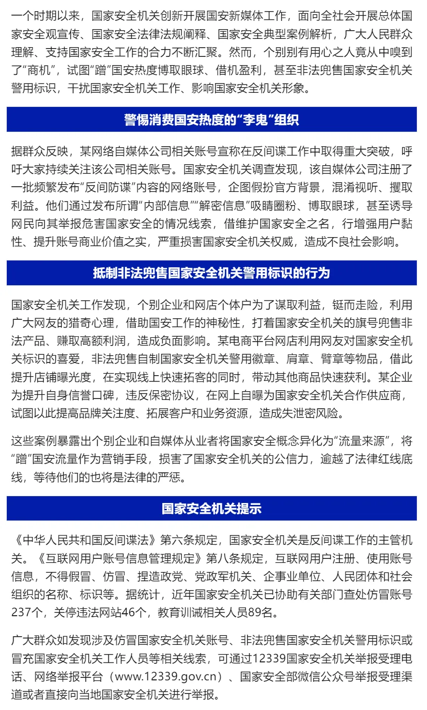 全民国家安全教育 | 自媒体称在反间谍工作中取得重大突破?国安机关提醒