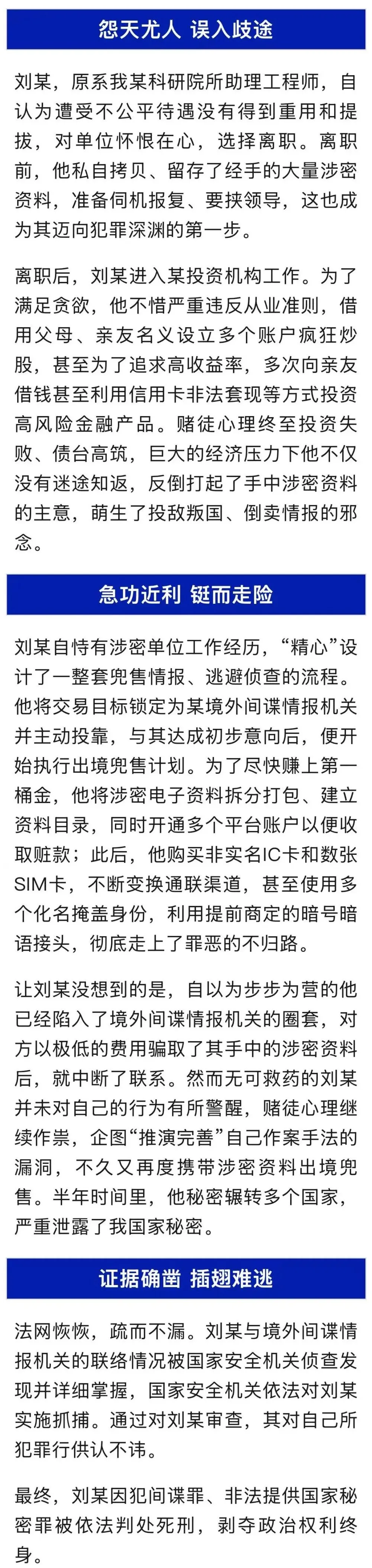 全民国家安全教育 | “精心”策划贩卖情报!科研人员刘某,死刑!