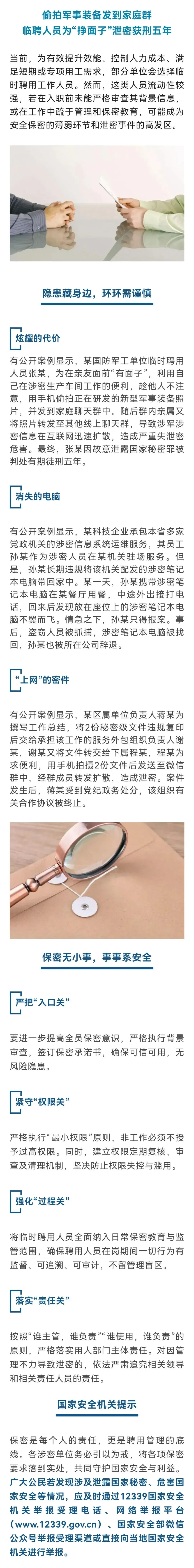 全民国家安全教育 | 获刑5年!为“挣面子”偷拍军事装备发家庭群致泄密