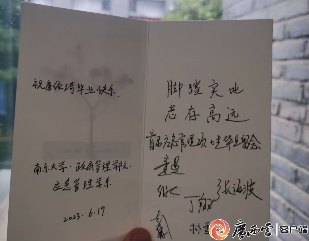2023年6月19日,唐依琦的导师在毕业典礼上送给她“脚踏实地,志存高远”八个字。受访者供图