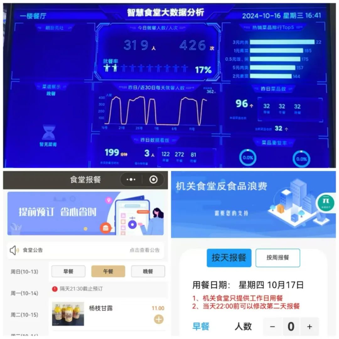 (二)推行智慧管理,推动“光盘行动”深入开展。全区各机关食堂按照《机关食堂反食品浪费工作成效评估标准》有关要求,通过打造“智慧食堂”,实行订餐报备制度,做到精准配餐;推行一料多菜、用活用好“边角下料”;常态化组织开展问卷调查,提供小份菜、半份菜,鼓励干部职工自带饭盒打包;规范处置餐厨垃圾等措施严抓源头管理,细化节粮举措,常态化推进“光盘行动”,从源头上减少不必要的浪费。梧州市推行“智慧食堂”系统,通过“食堂云”APP,整合市直机关食堂和餐饮企业资源,实现线上点餐、灵活配餐动态管理。崇左市机关食堂推出小碗菜、半份菜,满足干部职工不同菜品需求,最大程度降低食材浪费比例。自治区生态移民发展中心使用App对食堂常态化进行满意度调查,并进行数据分析,不断提升服务质量。自治区发展改革委在机关食堂常态化开展“光盘奖励”活动,鼓励干部职工践行并推广“光盘行动”。