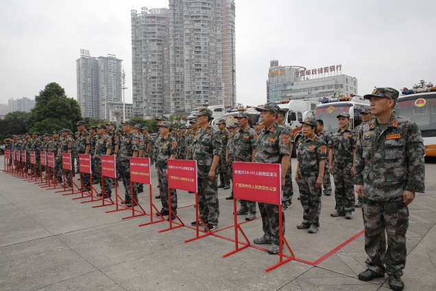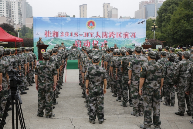 为深入贯彻落实习近平主席在年初全军开训动员大会上关于强化练兵备战、抓好军事训练的重要指示,进一步提升人防队伍训练水平,积极探索人防跨区支援行动训练演练的新思路、新方法,6月6日,由广西、湖南两省区人防办共同组织的“2018-HY人防跨区演习”在湖南省衡阳市举行。广西壮族自治区人防指挥信息保障中心、湖南省人防指挥信息保障中心以及柳州市、桂林市、河池市、来宾市、衡阳市人防办约130人参加活动,防城港市、百色市、贺州市人防办到现场观摩演习。广西壮族自治区人防办党组书记、主任陈刚,湖南省人防办党组成员、副主任谢晓清,衡阳市委常委、衡阳警备区司令员贺小坤,衡阳市副市长彭玉明等党政军领导出席演习启动仪式并讲话。