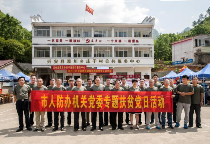 为贯彻落实桂林市直机关工委关于开展党建扶贫活动的部署要求,进一步加强与贫困户的沟通联系,深入了解上级有关扶贫政策,增进广大村民对扶贫工作的理解和信任,确实解决贫困户的实际困难,5月22日,桂林市人防办机关党委组织全办在职党员干部、兴安县人社局帮扶联系人、桂林市中医院医务工作人员近50人,顶着烈日,冒着酷暑,驱车近三个小时,来到大山深处市人防办挂点帮扶村兴安县莫川乡庄子村开展了一场别开生面、异彩纷呈的专题党日活动。