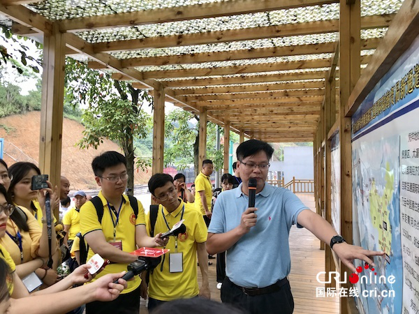 凭祥综合保税区管委会副主任叶盛(右一)向采访团介绍广西友谊口岸国际货运专用通道 摄影 唐颖倩