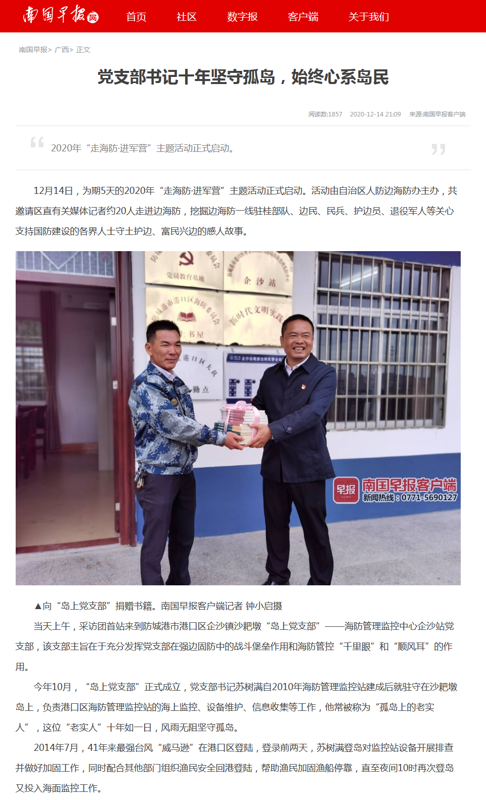 【南国早报网】党支部书记十年坚守孤岛,始终心系岛民