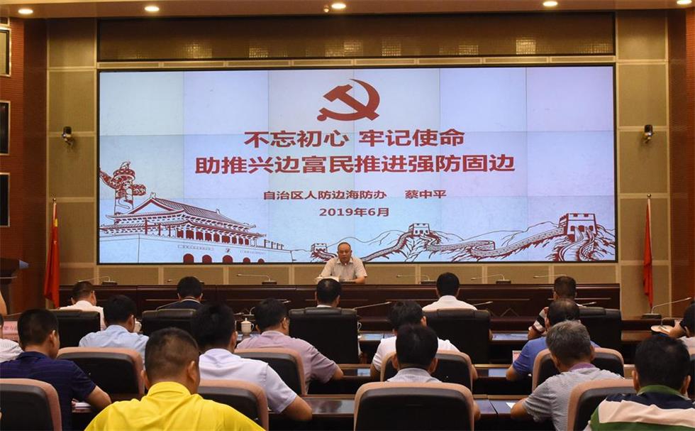 为扎实推进“不忘初心 、牢记使命”主题教育,6月21日上午,自治区人防边海防办党组书记、主任蔡中平同志以“不忘初心牢记使命 助推兴边富民推进强防固边”为题,从怎样理解“初心和使命”、新时代为什么要强调“初心和使命”、如何践行“初心和使命”三个层面,为全办党员干部上专题党课。自治区人防边海防办领导班子成员,机关、直属事业单位全体党员干部参加本次专题党课。自治区“不忘初心、牢记使命”主题教育第四巡回指导组副组长瞿国华及有关同志莅临指导。