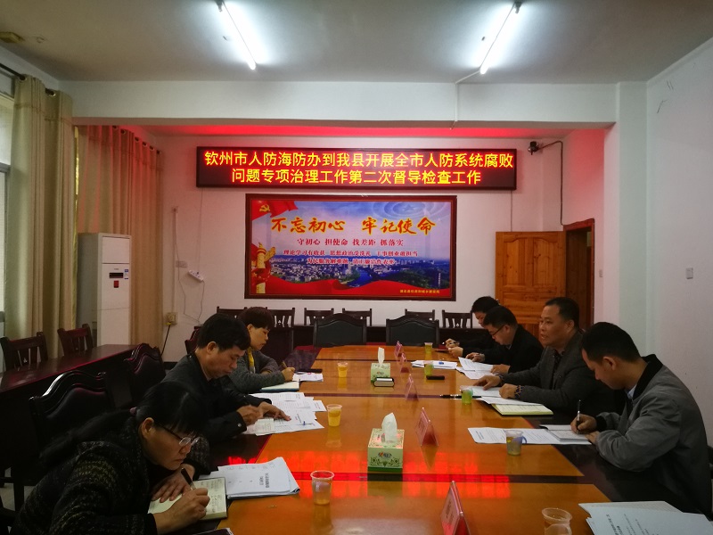 1月14-15日,钦州市纪委监委和市人防海防办联合组成督导组,对灵山县、浦北县开展人防系统腐败问题专项治理工作进行第二次督导检查。