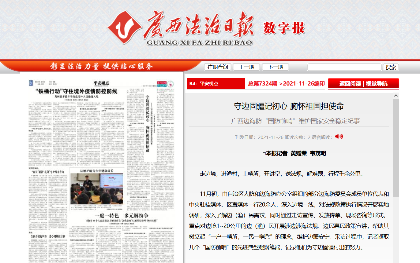 【广西法治日报】守边固疆记初心 胸怀祖国担使命 —— 广西边海防『国防前哨』维护国家安全稳定纪事