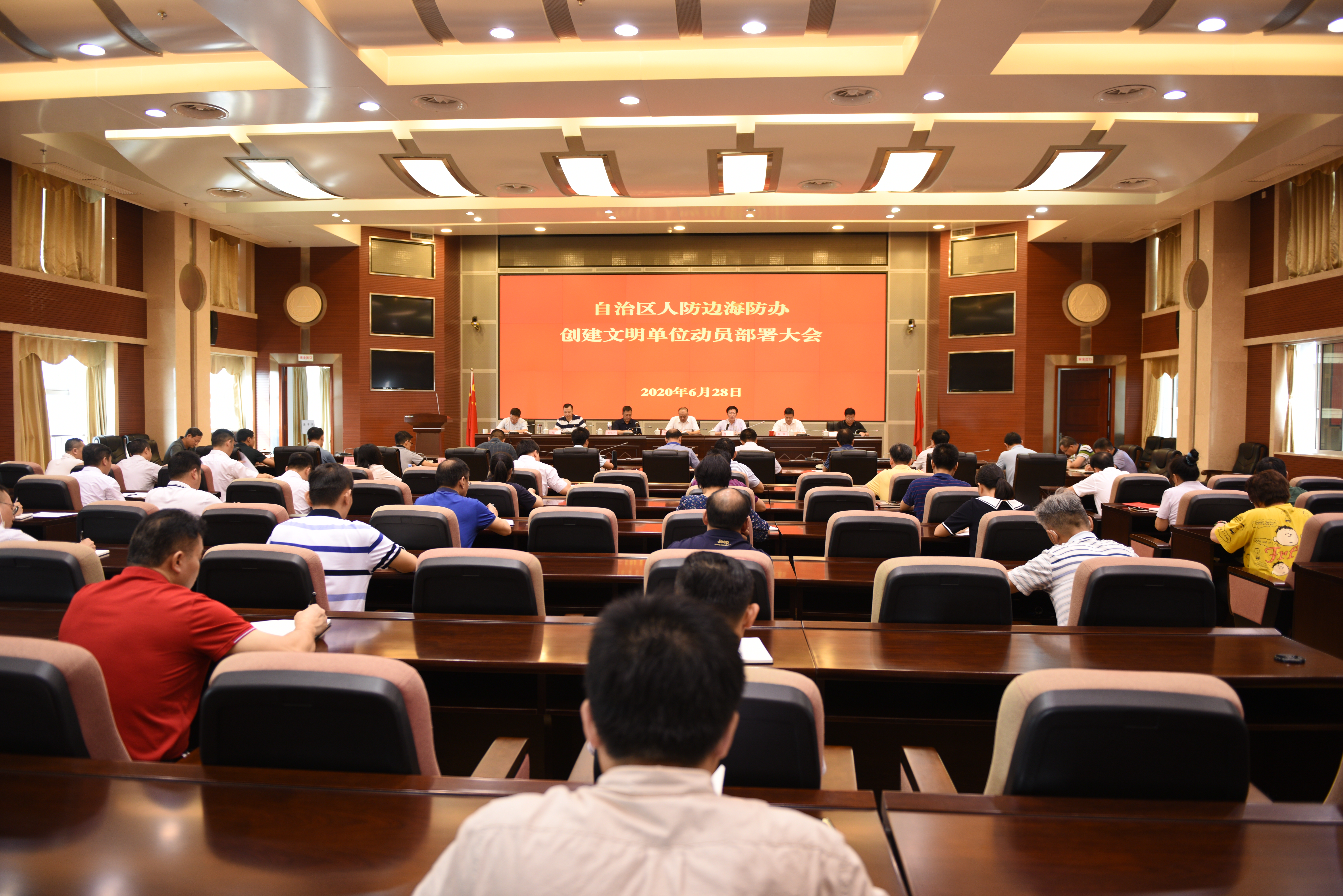 6月28日上午,自治区人防边海防办召开创建文明单位动员部署大会。会议由办党组成员、副主任夏振林主持。办党组书记、主任蔡中平,办党组成员、副主任黄小宁、黄瀚,一级巡视员周卫、二级巡视员张国强、宋勇松参加会议。
