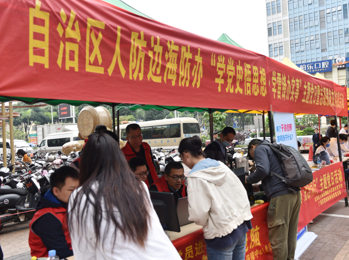 3月15日,自治区人防边海防办机关党委组织机关各处、直属单位党员干部走进南宁市尧头岭社区开展“学党史悟思想·学雷锋办实事”主题党日暨志愿者服务文明实践活动,向居民群众提供多种服务。
