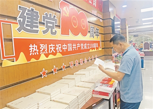 “五一”期间,南宁书城、新华书店等购书中心设置了“建党100周年”专柜,吸引市民前往选购党史书籍。何学俏/摄