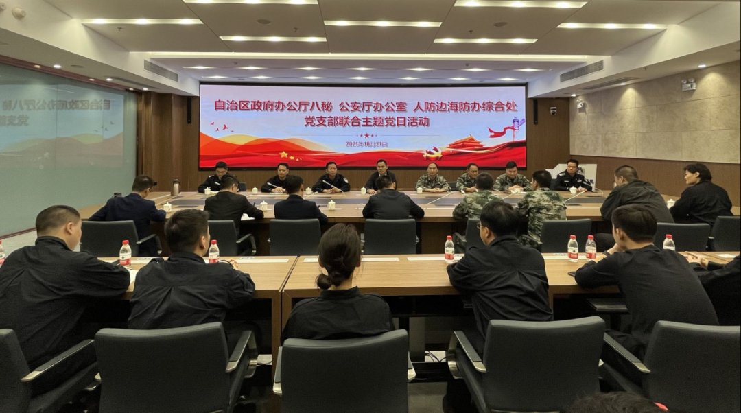 座谈交流。自治区政府办公厅第八秘书处党支部、自治区公安厅办公室党支部和自治区人防边海防办综合处党支部就日常工作开展情况,支部党建工作互相交流经验做法。