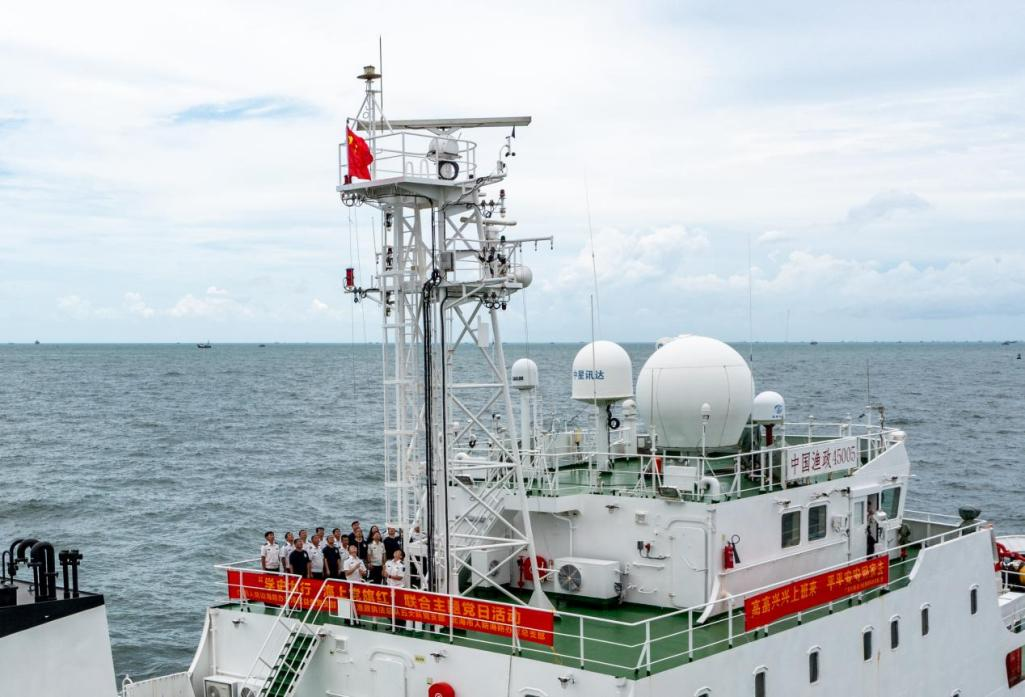 主题活动中,支部举行了海上升旗仪式;面对鲜红的党旗,党员们高举右手,重温入党誓词,表达矢志不渝为共产主义奋斗终生、坚决守好祖国南大门、维护国家海洋权益的坚定决心。通过此次海上主题党日活动,不仅让党员干部职工进一步学习领会了习近平总书记“七一”重要讲话精神以及对边海空防的重要论述,而且激发和强化了大家对党员身份的认同感和建设强大稳固的现代边海防的使命感,真正做到“学史力行”,坚决守护祖国的蓝色国土,扎扎实实把边海防工作做得更好。