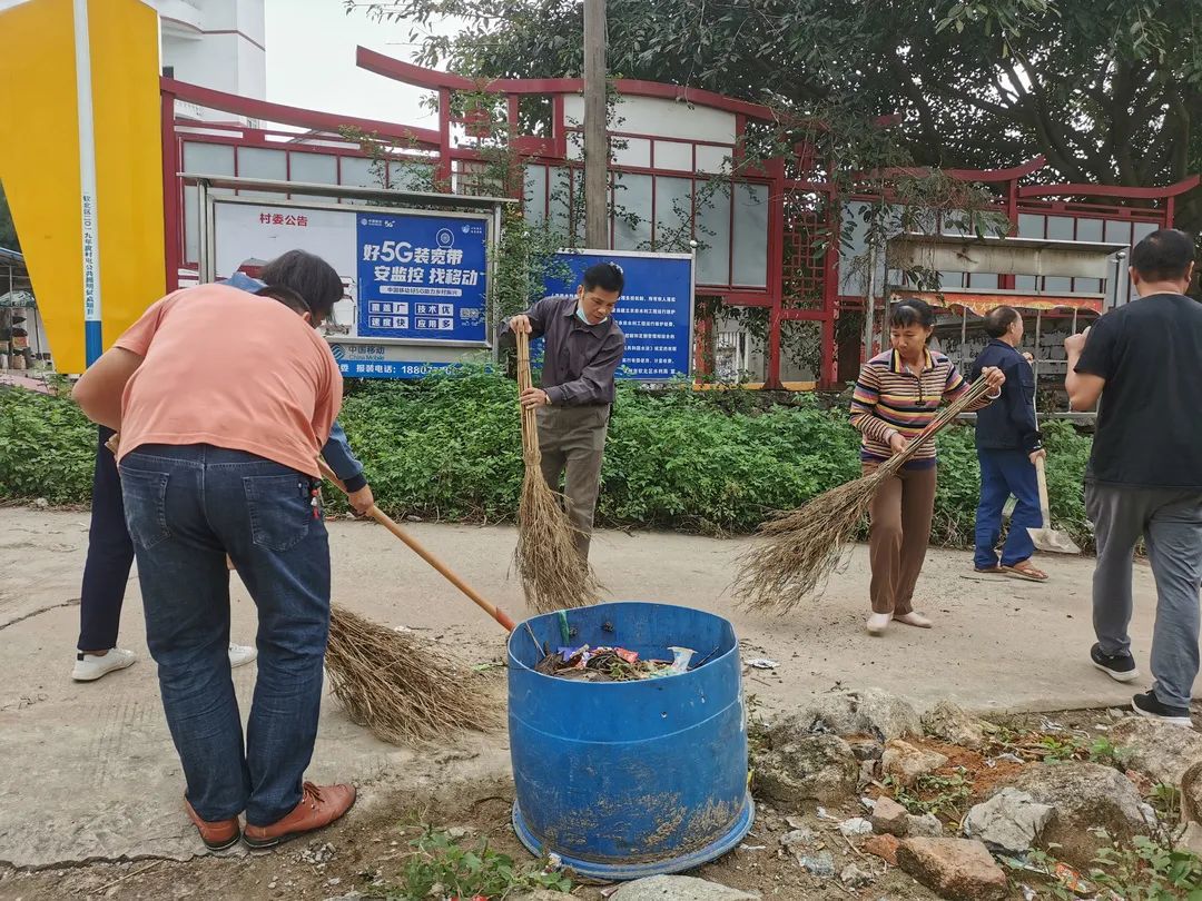 ▲图为工作人员清洁街道,助力乡村振兴