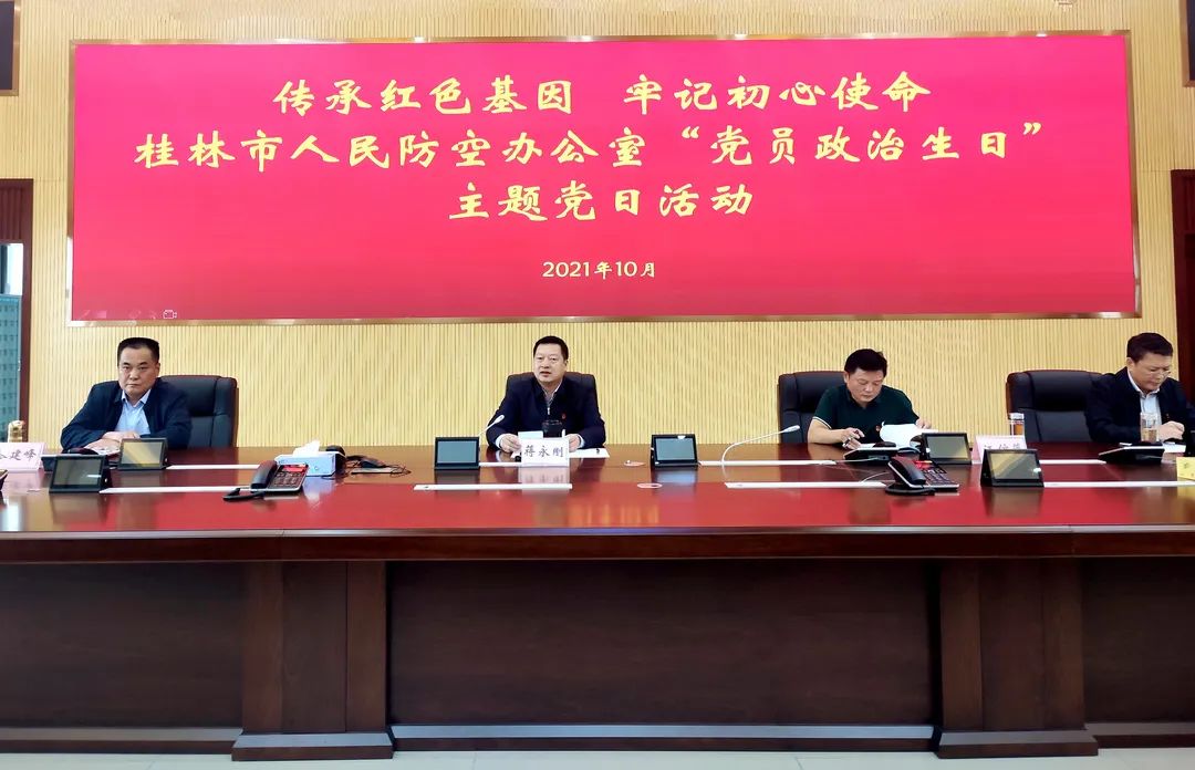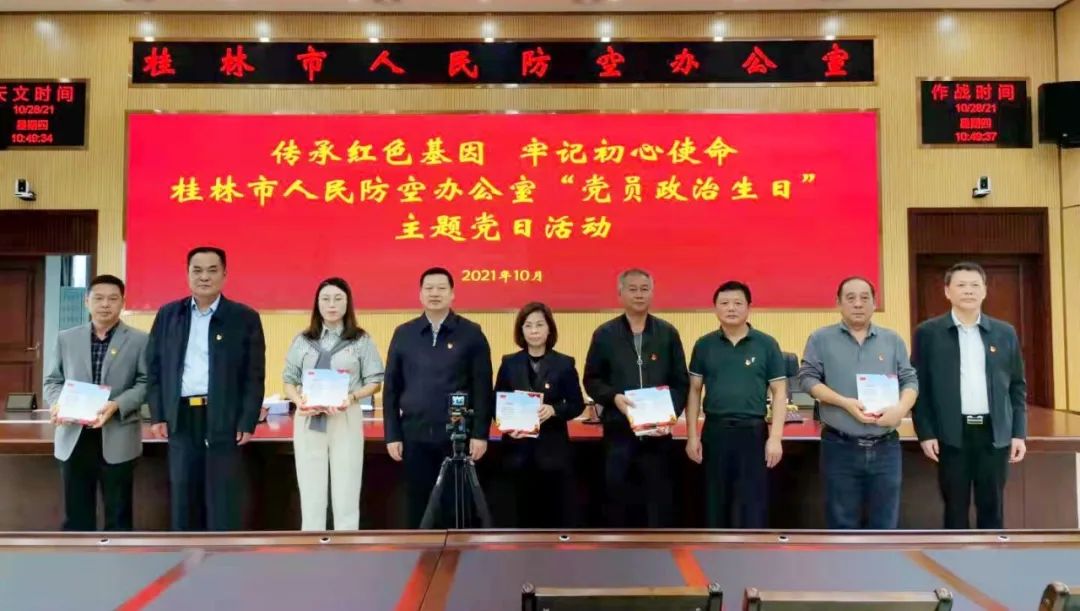 近日,桂林市人防办开展“传承红色基因 牢记初心使命”党员政治生日主题党日活动,为下半年入党的52名党员过政治生日,办党组书记、主任蒋永刚以普通党员身份过政治生日并讲话。