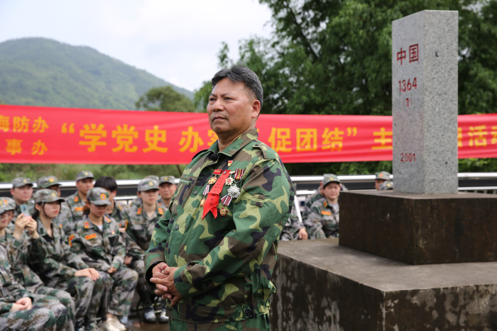 英雄述辉煌,丰碑固边疆。在1364号界碑旁,原广州军区守备一师后勤部部长、防城港市人防办主任梁放生用自己的亲身经历为全体人员讲述了李作成上将在对越反击战中如何奋勇歼敌的战斗经过,重现了当年惊心动魄、热血沸腾的战况。梁放生同志还勉励大家要铭记历史,发扬共产党人不畏困难不怕牺牲的精神,为实现中华民族伟大复兴努力奋斗。