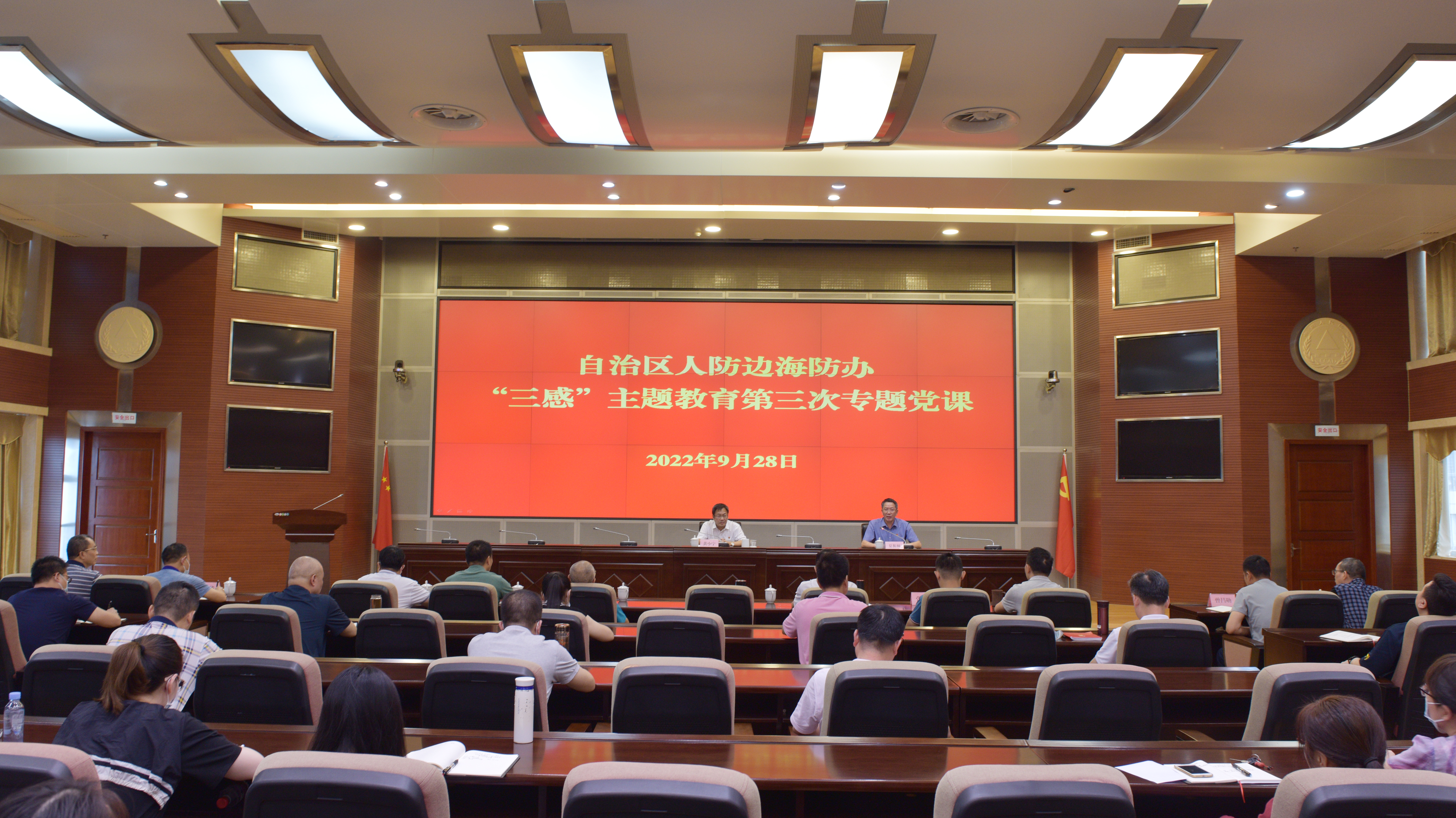 当前,自治区人防边海防办开展的“三感”主题教育正扎实有序开展。9月28日下午,自治区人防边海防办党组成员、副主任黄小宁以“强化责任担当,忠诚履行使命”为题进行“三感”主题教育第三次专题党课授课。自治区人防边海防办党组成员、副主任夏振林主持党课,办党组成员、副主任赵越,机关和直属单位全体党员干部职工参加党课学习。