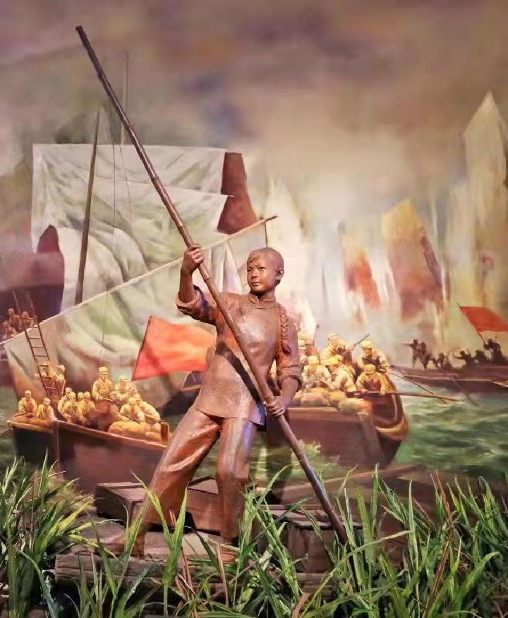 渡江战役纪念馆里以马毛姐为原型设计的雕塑。(渡江战役纪念馆供图)