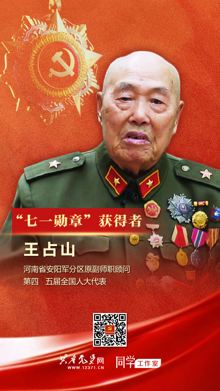 河南省安阳军分区原副司令员王占山先后参加了辽沈、平津、两广、抗美援朝、边境作战等战役战斗,负伤38处;他敢于同不正之风做斗争,匡正家风、严于律己,从不向组织伸手,从不让家人搞特殊化;他宁当“穷司令”,过“抠”生活,也要想方设法让困难群众过上好日子……在建党百年之际,这位铁心跟党走了73载的老军人获得“七一勋章”。