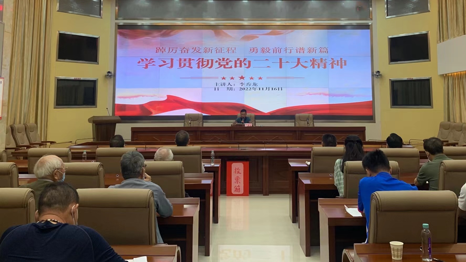 学习与深入宣传相结合。11月16日,北海市人防海防办组织全体党员及离退休党员参加“踔厉奋发新征程 勇毅前行谱新篇——学习贯彻党的二十大精神”专题党课,共同学习习近平总书记在党的二十大报告中提出的一系列重要论述,进一步引导党员干部在学中感悟思想伟力,牢牢把握党的二十大精神的核心要义、丰富内涵,力求做到常学常新、常思常明、常悟常进。