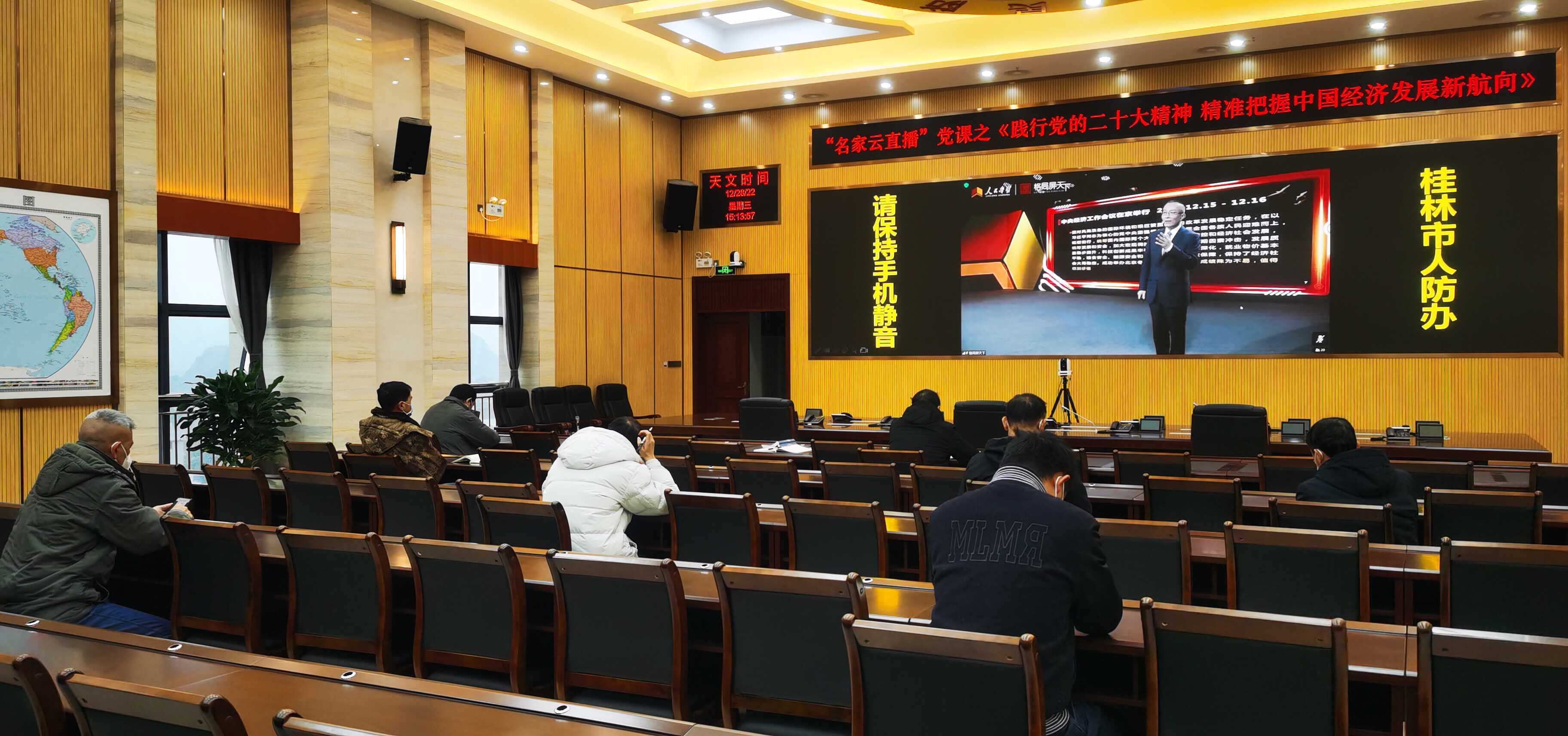 近日,桂林市人防办组织党员干部观看“名家云直播”之“践行党的二十大精神,精准把握中国经济发展新航向”专题党课。