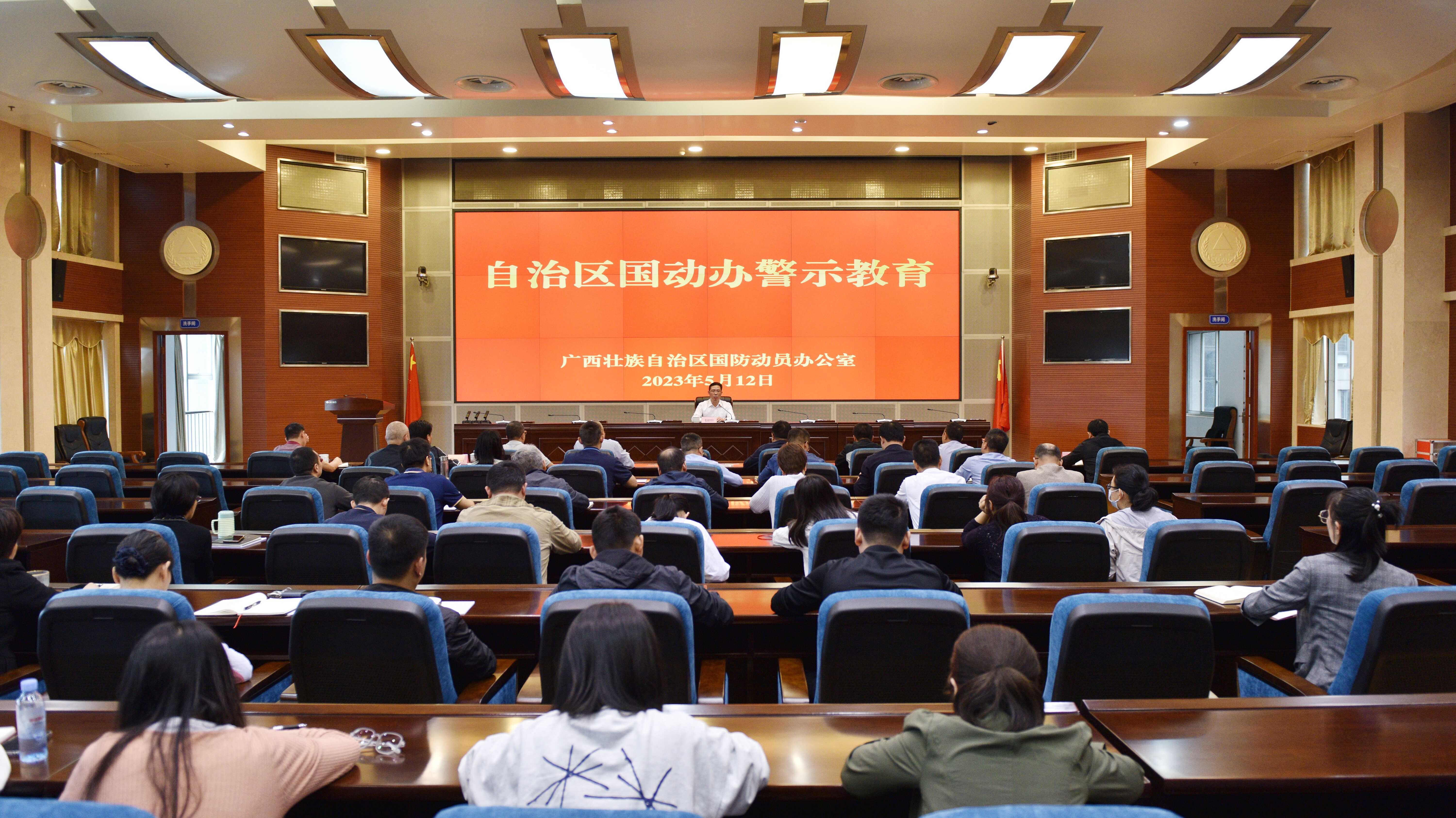 为深入贯彻落实党的二十大精神,一体推进学习贯彻习近平新时代中国特色社会主义思想主题教育和清廉机关建设,5月12日,自治区国动办开展警示教育活动,组织全办党员干部职工集中观看警示教育专题片,办党组书记、主任韦绍仕出席活动并进行廉政教育集体谈话。