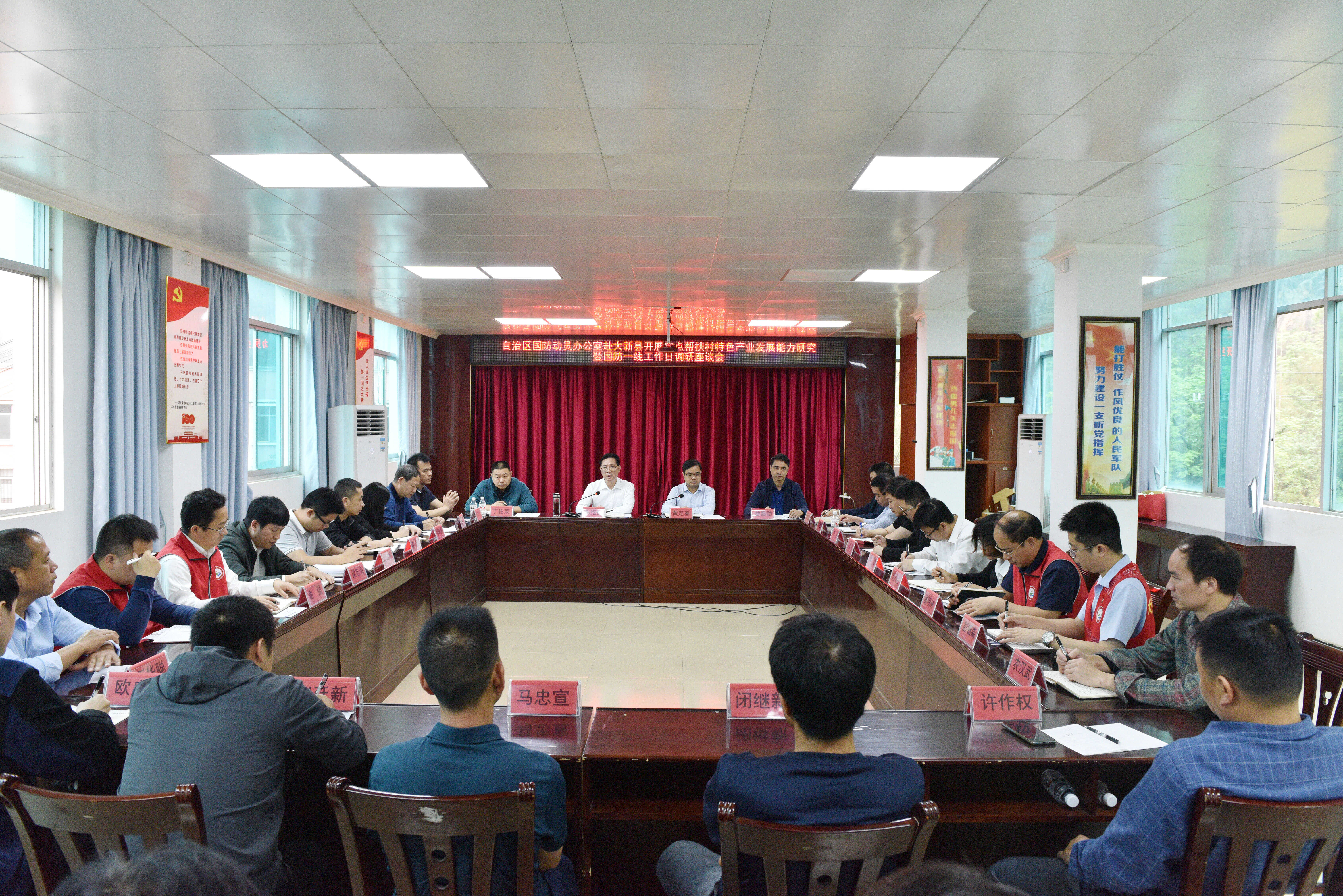 4月13日至14日,自治区国动办党组书记、主任韦绍仕带队,到崇左市大新县硕龙、下雷镇定点帮扶村,开展提升特色产业发展能力研究暨国防一线工作日调研活动,大力推行“三听三问”工作法, 推动大兴调查研究工作走深走实,助力乡村振兴提质增效,促进兴边富民、守边固边、强边固防。大新县有关领导陪同调研。