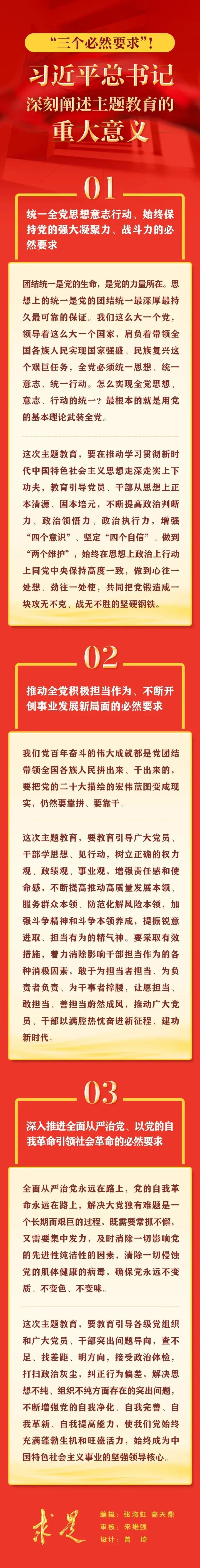 5月1日出版的第9期《求是》杂志刊发习近平总书记重要文章《在学习贯彻习近平新时代中国特色社会主义思想主题教育工作会议上的讲话》。在这篇重要文章中,习近平总书记用“三个必然要求”深刻阐述开展这次主题教育的重大意义。
