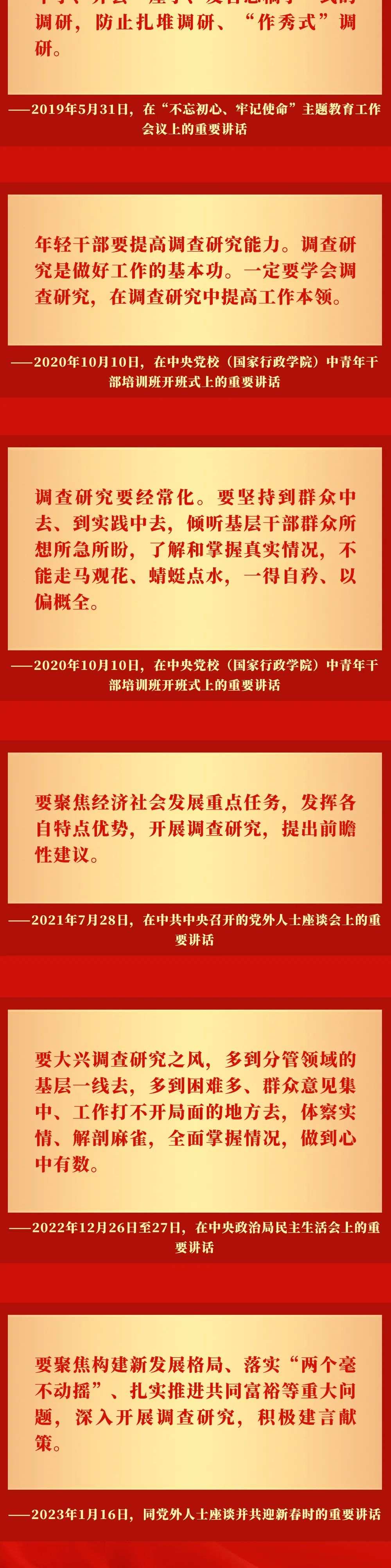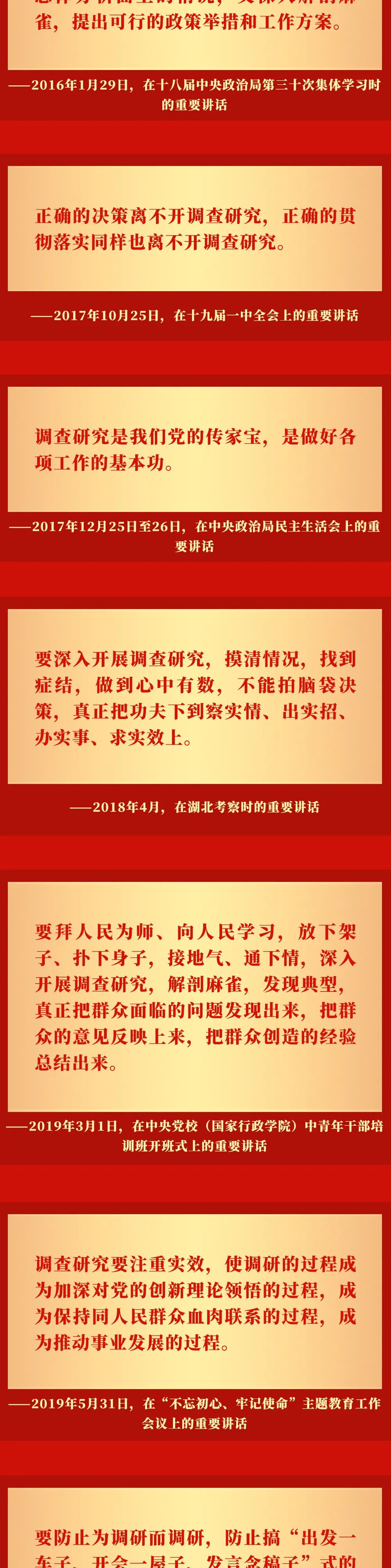 党的十八大以来,习近平总书记高度重视调查研究工作,在不同场合反复强调调查研究的重要性,一系列重要讲话和重要指示,为全党大兴调查研究、做好各项工作提供了根本遵循。让我们一起重温习近平总书记关于调查研究的重要讲话——