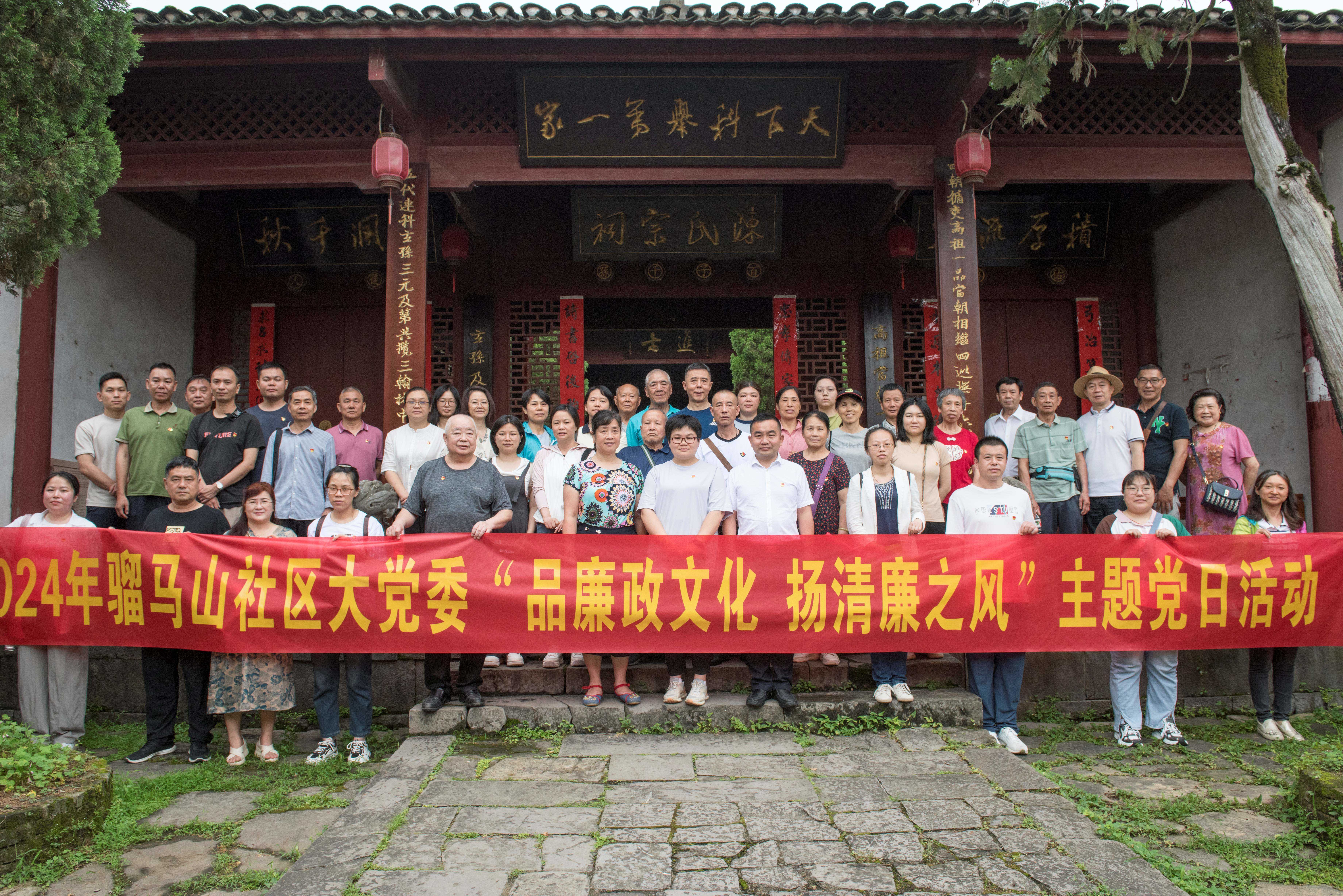 活动中,陈宏谋第九代嫡孙陈富息带领党员们参观,并为大家讲解陈宏谋一生勤政为民、廉洁治家的高尚品德。在陈氏宗祠,陈富息详细讲解了“天下科举第一家”、“清官廉吏”等牌匾的背后意义并带领大家参观了宗祠内陈列的碑刻、书籍、对联等。随后,骝马山社区党委书记宾运连在榕门中学礼堂内围绕“铸牢中华民族共同体意识”为党员上了一堂专题党课。