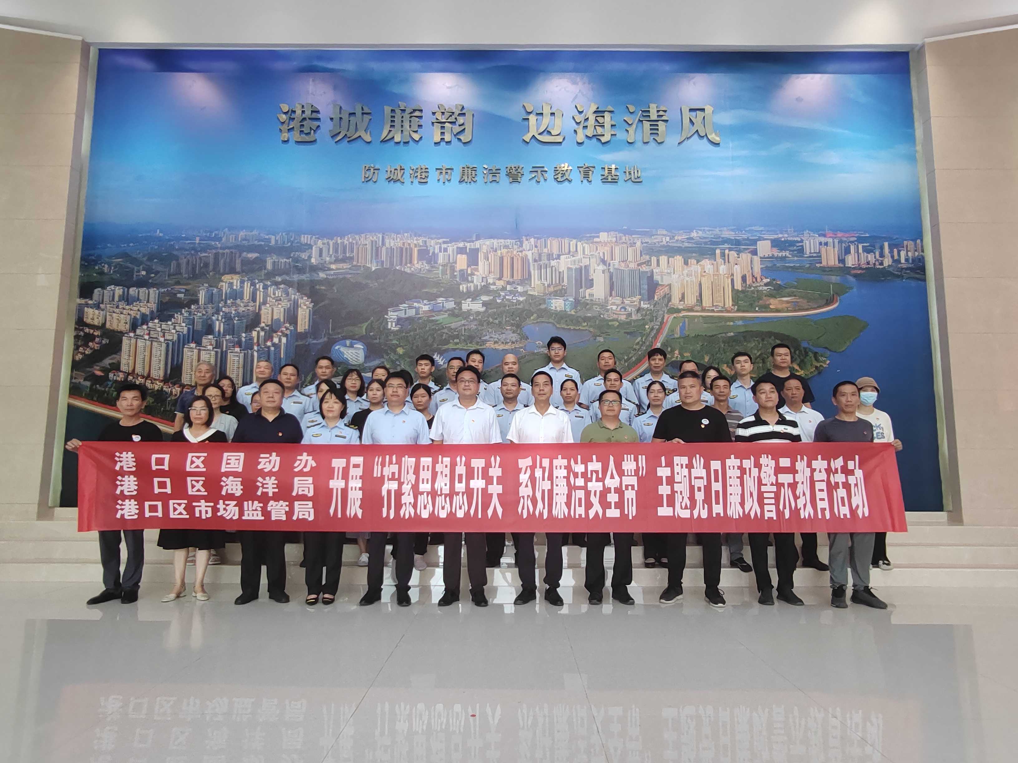 6月3日,防城港市港口区国动办、区海洋局、区市场监管局45名党员干部前往防城港市廉洁警示教育基地开展“拧紧思想总开关 系好廉洁安全带”主题党日廉政警示教育活动。