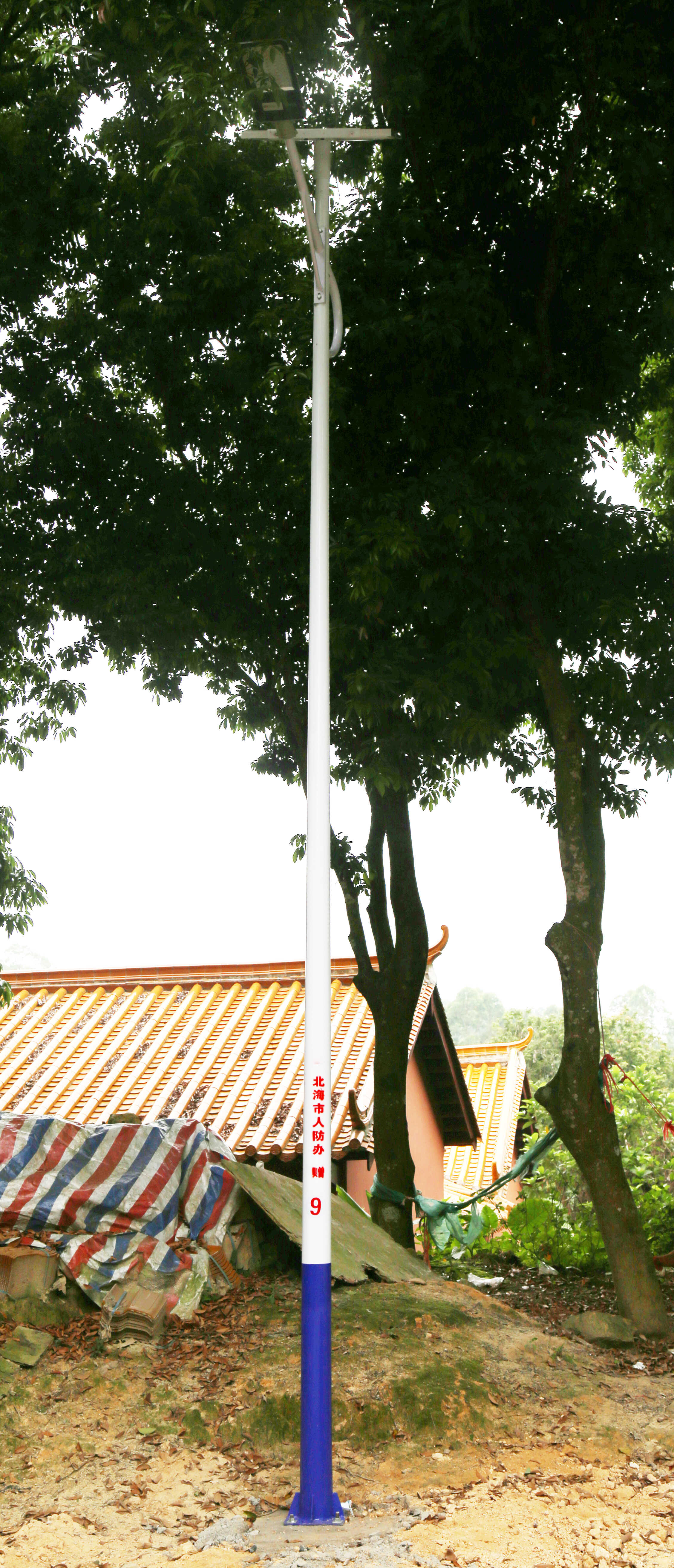 ▲北海市人防海防办在平洋村路口处安装的太阳能路灯