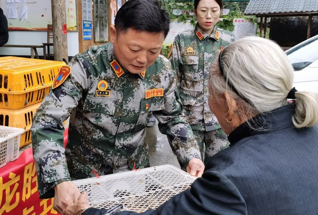 ▲图为桂林市人防办向部分困难群众赠送鸡苗